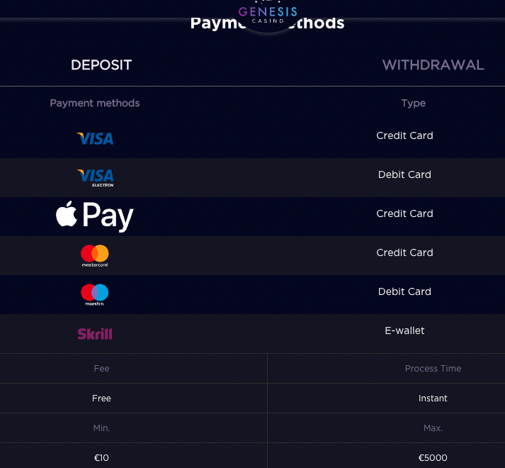 Withdrawals should land in your account quickly at Genesis Casino, as the site takes payment methods seriously. The process is smooth and can be completed in just a few clicks or taps.